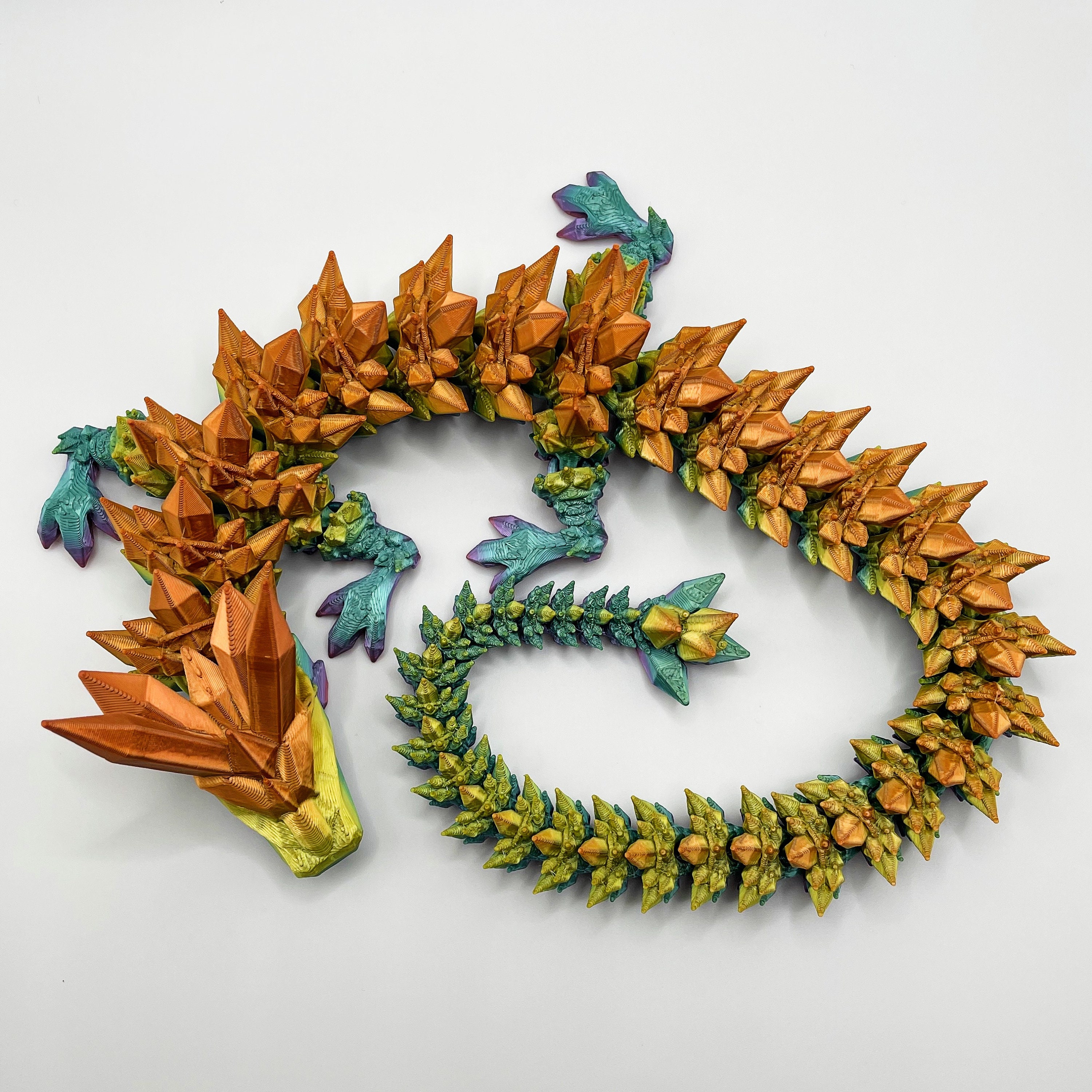 This articulated 3D Printed Articulated Crystal Dragon features movable joints that allow for various poses, making it a versatile addition to any collection.